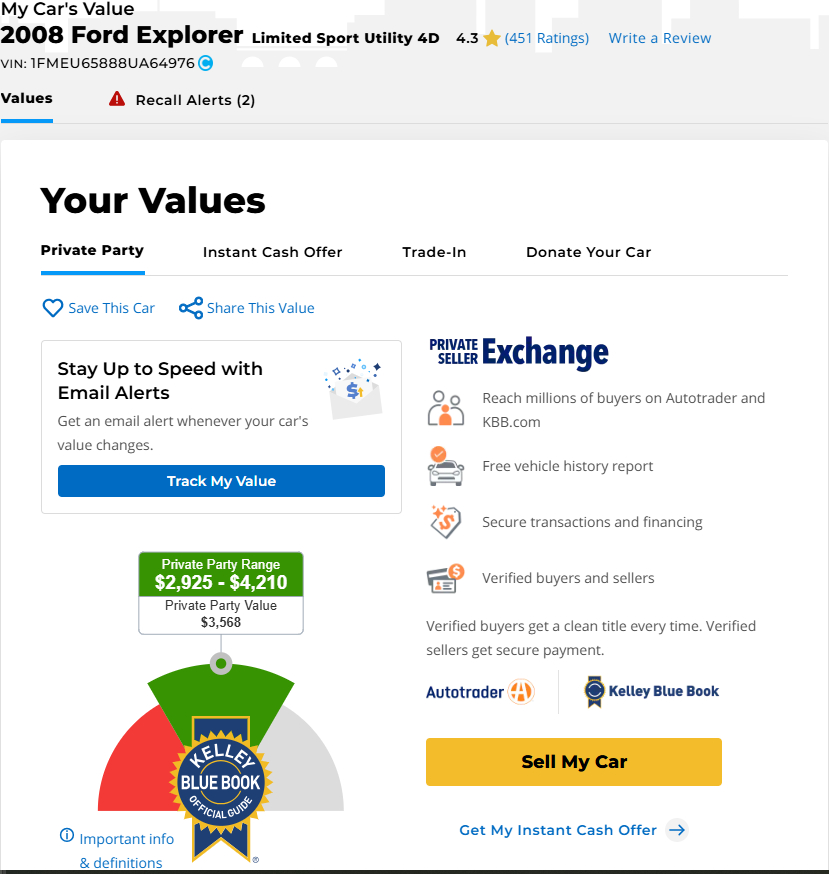 Vehicle Inquiry for 2008 Ford Explorer LIMITED